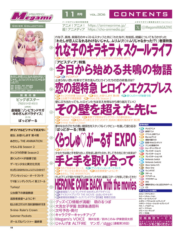 11月号の表紙&巻頭特集には『わたしが恋人になれるわけないじゃん、ムリムリ!( ※ムリじゃなかった!?)』が登場!スタッフ・キャストインタビューを交えて、本作を総括!続編についても!?
