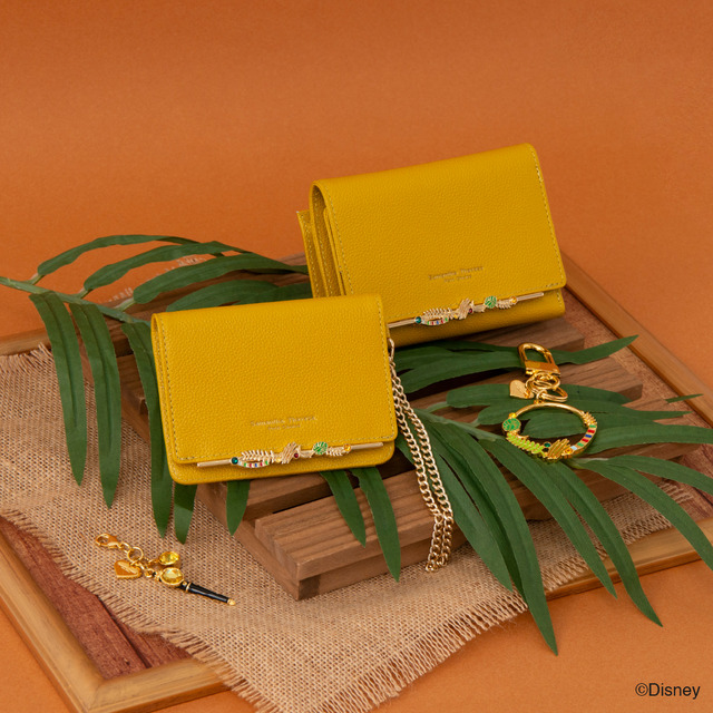 「サバナクロー寮」のコレクションは、寮をイメージしたイエローのレザーに、サバンナに生息する植物のモチーフや爪痕、寮生が身につけているネックレスが金具されたデザインした「財布」、「パスケース」、「キーリング」を揃える。マジカルペンをイメージした「ファスナーチャーム」は、イエローカラーのストーンがあしらわれている。