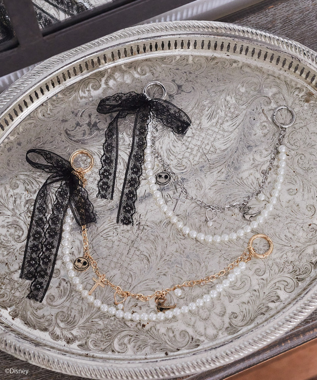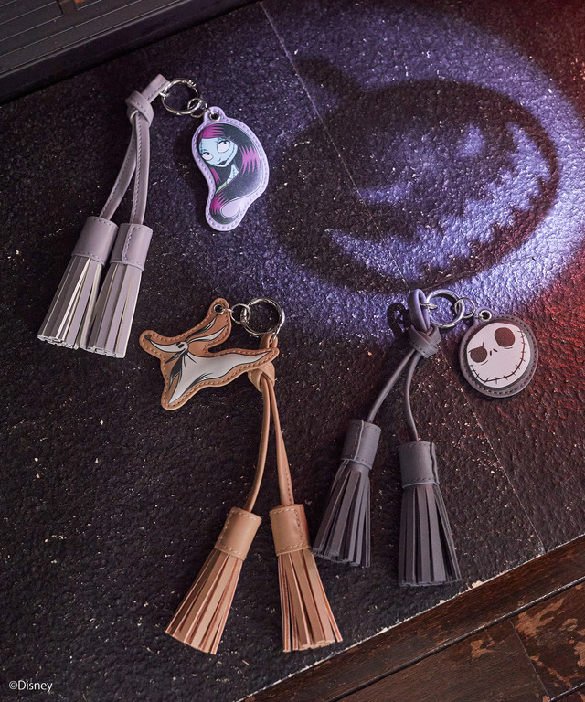 そのほか、トレンドのチャームも2種類がラインナップされた。ジャックやゼロのミニプレートとパールにレースリボンを組み合わせたフェミニンなチャームと、キャラクターとフリンジがポイントのカジュアルなデザインが用意されている。