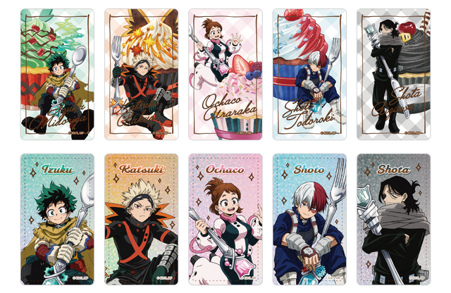 前回に引き続き、“オープンスクール”では雄英高校制服姿を着ながら、デクら5名のキャラクターがヒーローコスチュームの一部を装着した描き下ろしビジュアルを用意。 また、キャラポップストアでは「カップケーキ」をテーマに、デク、爆豪、轟、麗日お茶子、相澤先生が、それぞれをイメージした大きなカップケーキと一緒に描かれたオリジナルグッズになって登場する。
