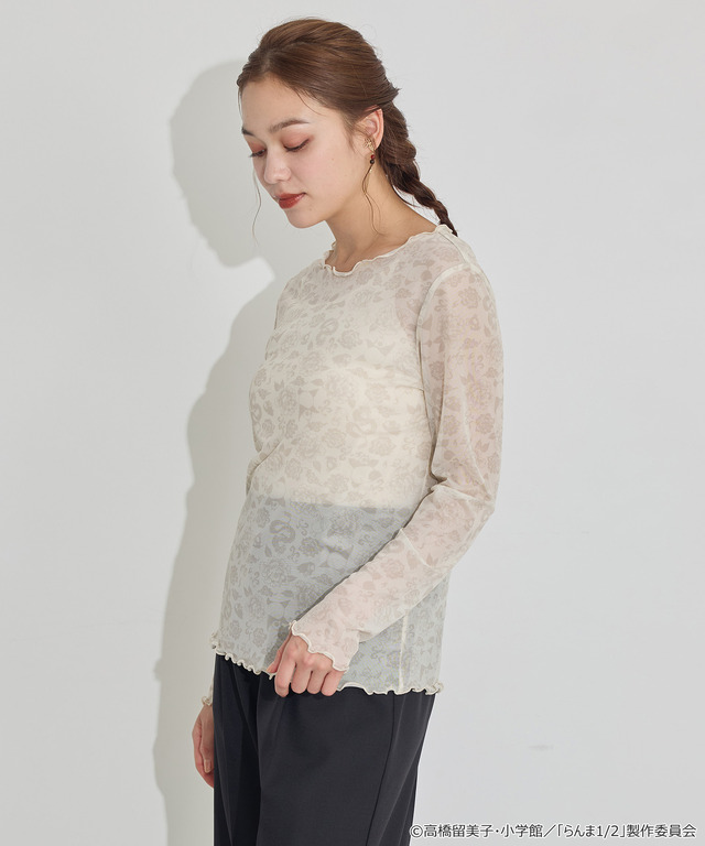 伸縮性のある透け感のある素材は、レイヤードスタイルでこなれ感のある着こなしに。カラーはブラックとアイボリーの2色展開。