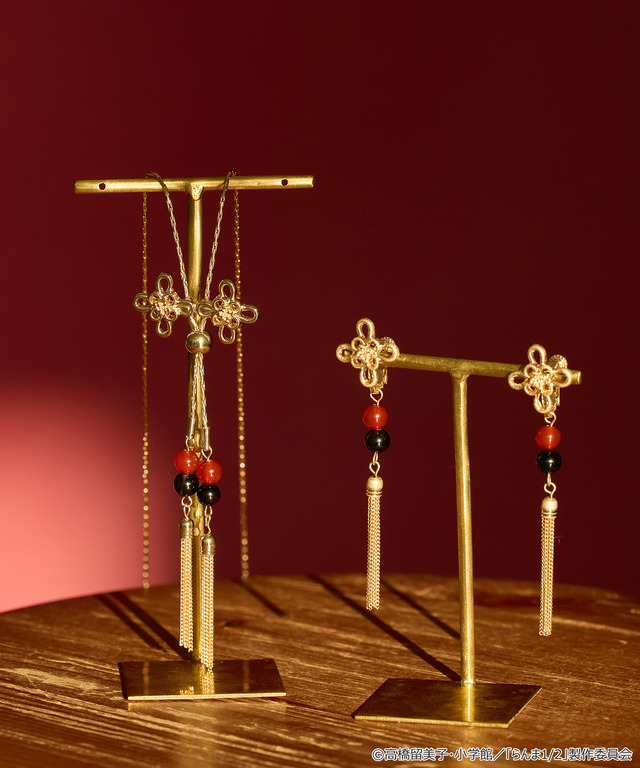 表にチャイナボタン、背面にゴールドで「Ranma1/2」の刺繡が入るアシンメトリーデザインが面白い。生地はジャカードとベロアのような起毛素材を組み合わせ、上品さを演出している。