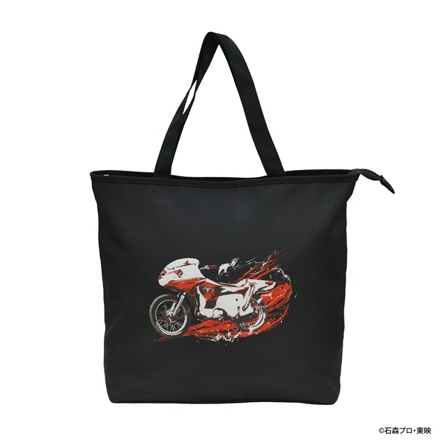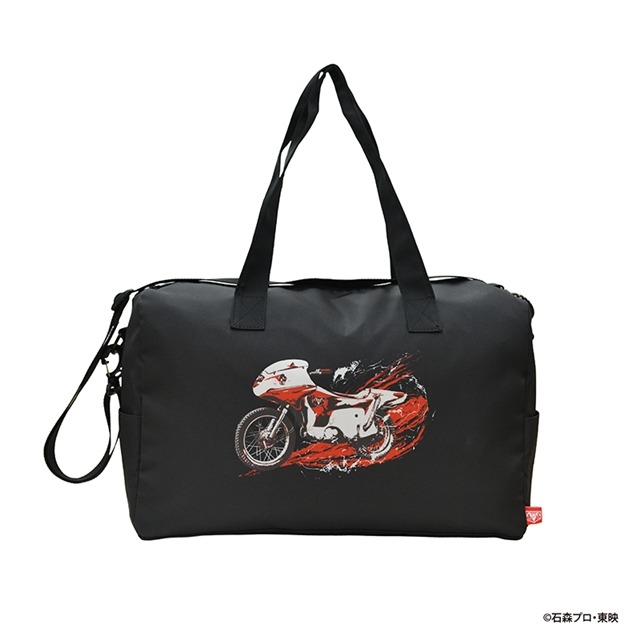 おりたたみトートバッグやおりたたみボストンバッグには、仮面ライダーの愛車「サイクロン号」をモチーフにしたスタイリッシュなデザインが施された。