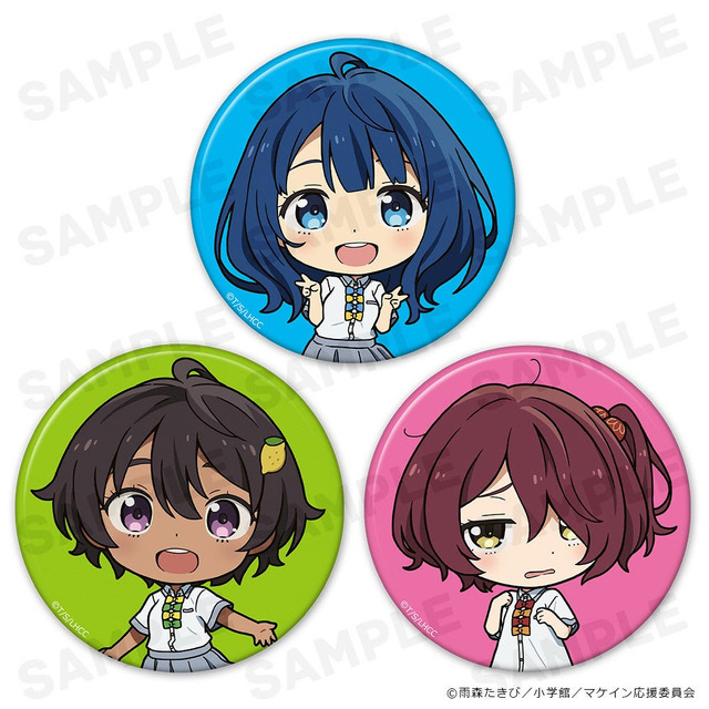 「キャラクターラバーマット」は杏菜と焼塩檸檬、小鞠知花が揃ったデザインだ。「ホログラム缶バッジ2個セット」は、各ヒロインのセットを選べる。