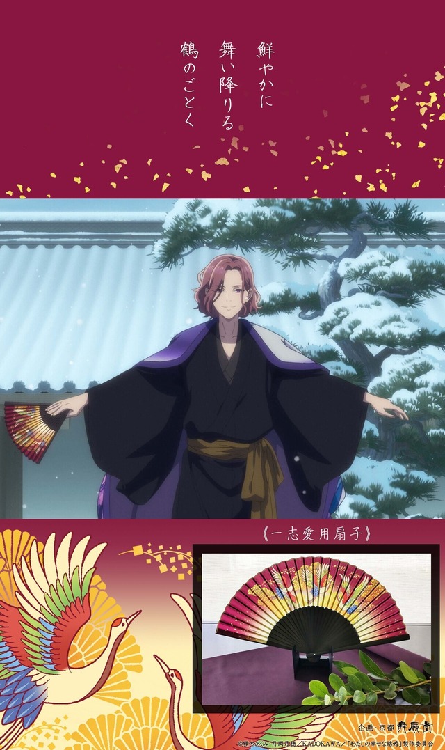 TVアニメ『わたしの幸せな結婚』と京都で扇子を製造する「舞扇堂(まいせんどう)」がコラボレーションし、辰石一志が愛用している扇子を再現した「一志愛用扇子」や50枚セットの「一筆箋」を展開する。2025年12月10日から予約受付中だ。