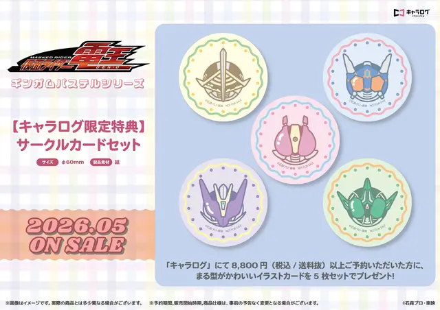 また、キャラログにて8,800円(税込/送料抜)以上予約すると、特典としてサークルカードセットがもらえる。まる型がかわいい、5枚セットのイラストカードだ。