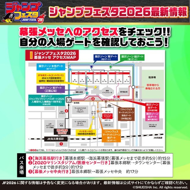ジャンプマンガの魅力が詰まった毎年恒例のビッグイベント「ジャンプフェスタ 2026」が、2025年12月20日・21日に幕張メッセにて開催される。このたび「ジャンプ NAVI」アプリにて、この2日間の「午後入場チケット」の先着順での登録受付が開始された。また、「ジャンプアミューズメン島」や「ジャンプキャラクターグリーティング」、「ジャンプキッズマネー」など、会場で展開される子どもも楽しめる企画の続報や、各種ステージのライブ配信の詳細情報も届いた。