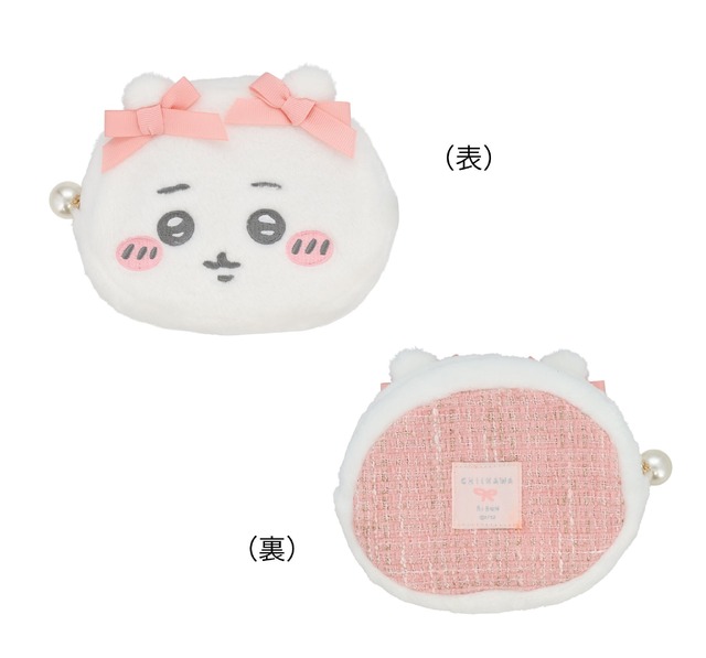 ダイカットポーチは、表面はもこもこ素材、裏面はツイード生地が使用され、リボン部分が立体的で愛らしさをさらにプラス。ちいかわたちのかわいさが詰まったアイテムが揃った。