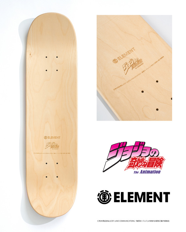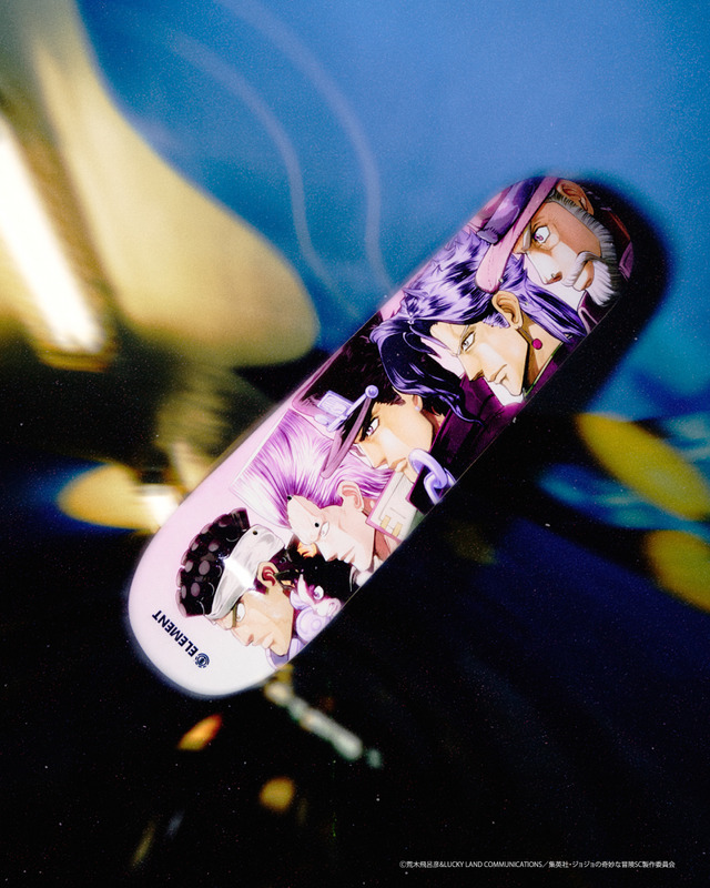 今回登場したのは、アニメ『ジョジョの奇妙な冒険 スターダストクルセイダース』と1992年にアメリカ東海岸のストリートをルーツに誕生し、世界中で展開するスケートボードブランド「ELEMENT SKATEABORDS」がコラボレーションしたもの。