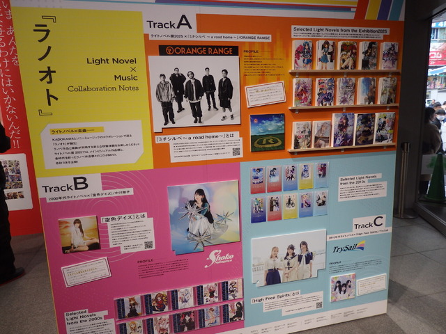 そのほかにも、小説の活字に焦点を当ててキャラクターたちの印象的なセリフを紹介していく映像展示や、さまざまなラノベとアーティストの楽曲がコラボした「ラノオト」コーナーも用意された。