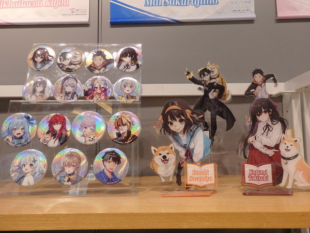 また、入口付近にはグッズ販売コーナーも。「ライトノベル展2025」用描きおろしイラストを使用した幅広帯を巻いた、特別仕様の各作品の書籍1巻を販売。さらに、描きおろしイラストを使用したタペストリーやアクスタ、Tシャツなども販売する。