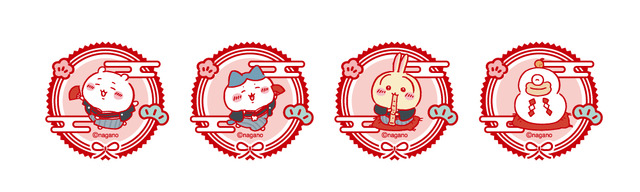 さらに、セブン‐イレブン店舗内のスタンドPOP(店内販促物)に記載された専用二次元コードを読み込むと、SNSアプリ「LINE」上でオリジナルちいかわスタンプを集められる「ちいかわLINEスタンプラリー」も行われている。1店舗につき、1個のスタンプを入手できるもので、スタンプはちいかわ、ハチワレ、うさぎ、オデが正月用の装いとなった全4種が用意された。絵柄の順番はランダムだが、異なる4店舗を巡ると全ての絵柄が揃う。