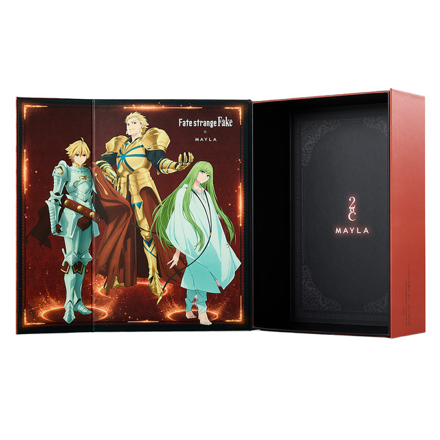 さらにヒールには、スタイルアップ効果も抜群の、安定感あるブロックヒールが採用されている。アウトソールはMAYLAオリジナルの柄が入った特別なデザインで、ディテールの隅々にまで世界観が詰め込まれた。いずれの商品も、TVアニメ『Fate/strange Fake』の世界観を表現した限定BOXで届けられる。