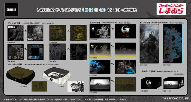 しまむらは、「ゴジラ」グッズをしまむらパーク(オンラインストア)にて1月21日15時より販売開始します。