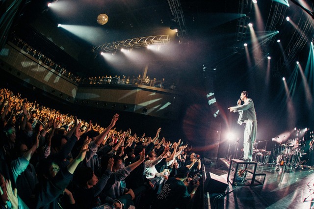 オーディエンスと目を合わせながら、ときにチャーミングな笑いを交えるほど、まさに友達に語りかけるように歌った「謳う」は、もともと友人に子どもが生まれたときに書いた曲であるが、ここでは全世代にとってのおまじないのように響き渡った。そして終盤、「≒」が放った希望の光は、どこまでも明るく照らし、永遠に消えやしないと信じさせてくれるものだった。最後は「雨酔い」。《僕等には まだ光がある/僅かだけど 確かにある》――そう歌いながら全員の合唱を先導するjo0jiは、これまでで最も強い光を放っていた。