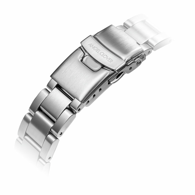 ケースバックはホイールをイメージしたデザイン。MFGとANGEL CLOVERロゴが刻印された。