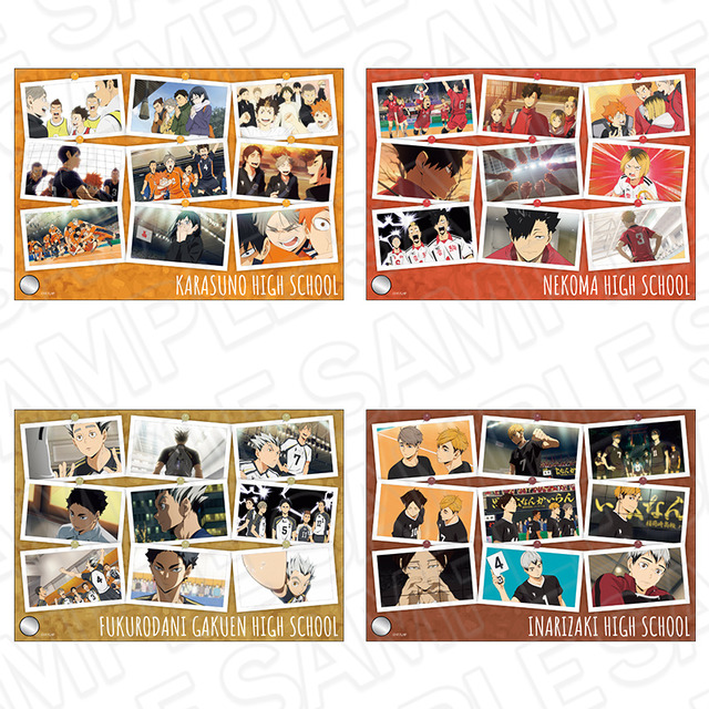「硬質カードケース」は全12種のランダム。音駒高校の黒尾・研磨、梟谷高校の木兎・赤葦、稲荷崎高校の宮兄弟など、日向たちと熱い試合を繰り広げたキャラクターたちがデザインされている。