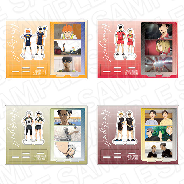 「ミニアクリルアート」は全4種。烏野・音駒・梟谷・稲荷崎高校の名シーンがデザインされたアイテムだ。