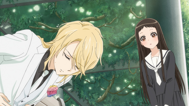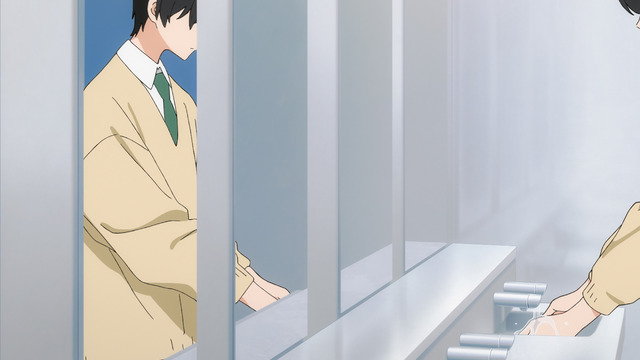 梅原:あまねの回想好きなんですよね。第18話の裏舞台もいいし……。あ、第17話のAパートで海夢が椅子に座ってなにかを考えていて、窓枠が光る美術のカット! 五条くんがいない間に衣装を手伝おうとして、失敗してしまうシーンです。椅子に座っていて窓枠が光るカットがあって、海夢がアッて思ってボタンを付けてあげる。言葉にしづらいけど、なんで海夢がその時に手伝おうと思ったか。第17話の冒頭で新菜とおじいちゃんの会話からなにか手伝いたいなと思う描写もあるのですが、物語や映像を作る時って理由を提示してしまうと思うんです。あれがあったからこのキャラクターはこの行動をしたって。観てる人に納得してほしいから、演出や作り手はその理由を提示しないといけない、整合性をとらないといけない、と思ってしまいます。でも新菜とおじいちゃんの会話で“ふり”はあるんですけど、最終的に海夢は窓のふちが光っていたからボタンを直しているんです。若林さんが言っていた話ですが、例えばなにかをする時に「今日は天気がいいなあ」と思ってなにかを買いに行くとか。そこに明確な因果関係はないじゃないですか。ただそれを見て、フと思った。そういうことが描かれていて、それはすごいなって。普通ならちゃんと理由があってなにかするけど、僕らの生活はそうじゃない時もある。フと、ただ空が青かったからとか、本当にあることだと思うんですよ。それがここには描かれている! ここはお気に入りですね。
