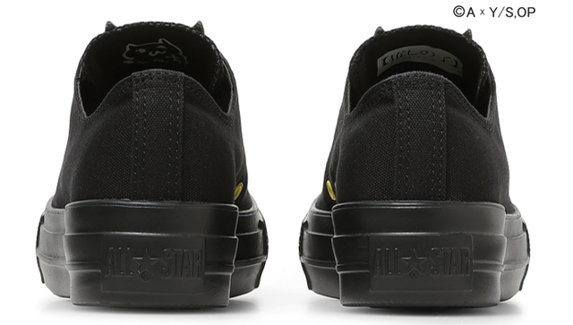 厚底仕様の「ALL STAR LIGHT PLTS」をベースに、リボンやフリル、ファットレース、黒×黄の配色など、各メンバーの個性を象徴するデザインを採用している。
