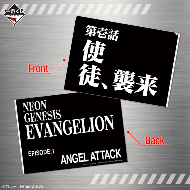 E賞「ラバーコースター」は、エヴァパイロットたちのIDカードデザインや、ネルフ・ゼーレのロゴデザインを揃える。F賞「アクリルスタンド」は、TVシリーズに登場した第3から第17までの使徒がオリジナルデザインで描き起こされたもので、好きな使徒を選べる。