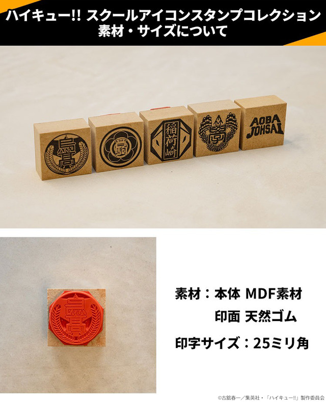 アニメ『ハイキュー!!』に登場する学校のマークをポン!と押して楽しめる「ハイキュー!! スクールアイコンスタンプコレクション」が登場。インターネットのはんこ屋さん「印鑑はんこSHOPハンコズ」のオンラインショップにて販売が開始された。