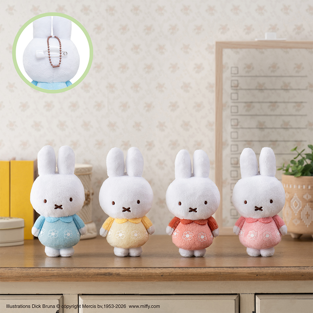 本商品は、春のお出かけが楽しくなるアイテムをそろえたミッフィーくじ第8弾。パステルカラーとお花をテーマに、タイトーくじオリジナル衣装「お花柄のお洋服」を着用したミッフィーのぬいぐるみや、トートバッグ、ポーチ、ハンドタオルなど実用性の高い雑貨アイテムがラインアップされた。