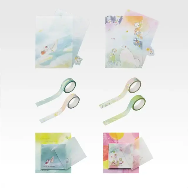 G賞は、書類の仕分けに便利なクリアファイルとインデックスのセット、マットな質感がイラストの雰囲気にぴったりのマスキングテープ2個セット、オシャレな台紙にセットされたトレーシングペーパー仕様の付箋の中から選べる「ステーショナリー」。
