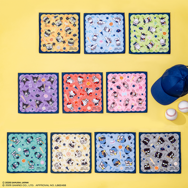 「タイトーくじ 侍ジャパン×サンリオキャラクターズ」では、侍ジャパンのユニフォームを着用したサンリオキャラクターズが集合。タイトーくじ限定オリジナルイラストを使用した特別なデザインのアイテムとなっている。