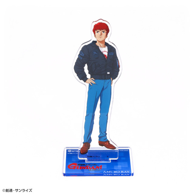 「STRICT-G ALPHA『機動戦士ガンダム 逆襲のシャア』 L2B HOODED GEN II FLIGHT JACKET アムロ・レイ」には購入特典も。1着の購入につき、オリジナル描き下ろしイラストを使用した「アムロ・レイ」のアクリルスタンドが1つプレゼントされる。(「プレミアムバンダイ」およびSTRICT-G店舗での購入が対象)