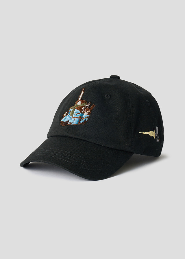 オート三輪らしきボディを手に入れたエミールのベースボールキャップ。左サイドに爆走するエミールを止めようと迎撃するポッドを刺繍した。コットン素材でオールシーズン使用できる。