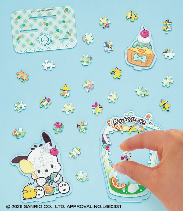 2枚のパズルと1枚のパーツを組み合わせて、立体的に飾れる新発想の「アクスタパズル」からハローキティ、マイメロディ、ポムポムプリン、ポチャッコが登場。その他「星のカービィ」「リラックマ」など全12種を3月13日より発売する。