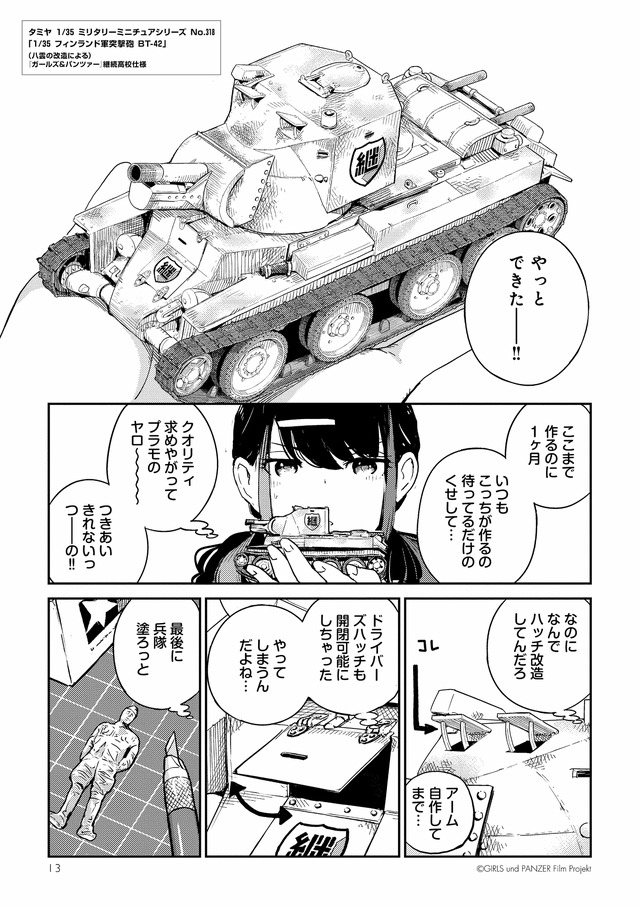 言葉で説明するともの凄く高度に聞こえるかも知れませんが、ちょっとした塗装だけなら誰でもできますし、本格的な作り込みをしようと思えば誰もマネできない技術を発揮する。そのふり幅もまた組み立てキットの世界の面白いところ。八雲はその上位に入る存在で、作中では塗装ブースを自作したり、エッチングパーツと呼ばれるディテールアップパーツを駆使したりして、プロ顔負けのテクニックを見せてくれます。