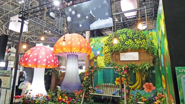 そのブースのひとつとして出展したKADOKAWAはこの春“イチ推し”のアニメを続々と投入。「ファンタジーフォレスト」をテーマに、各作品の世界をビジュアル化したようなコーナーを設置して「その世界に迷い込んだ感」たっぷりのブースで来場者をもてなしました。