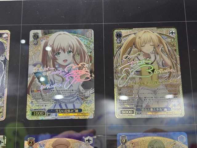 ただ並べてあるだけでなく、直筆サイン入りや高レアリティカードがずらりと並んでおり、その光景は圧巻の一言だった。
