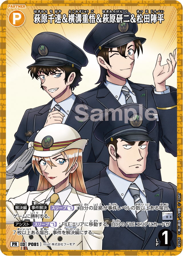 「FILE.1 特別な3組」では、首都圏エリアに設置された27駅のスタンプから好きなキャラクターを6駅分組み合わせることで、名探偵コナンカードゲーム描きおろしカード「江戸川コナン&世良真純」「萩原千速&横溝重悟&萩原研二&松田陣平」をプレゼント。
