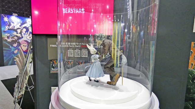 『薬屋のひとりごと』は狐面のオブジェが目を引くコーナーになっていましたし、もぐら叩きゲームがプレイできた『ドロヘドロ』のアトラクション、フォーマルな衣装をまとったレゴシとハルのドールが飾られた『BEASTARS FINAL SEASON』など個性豊かな内容でした。