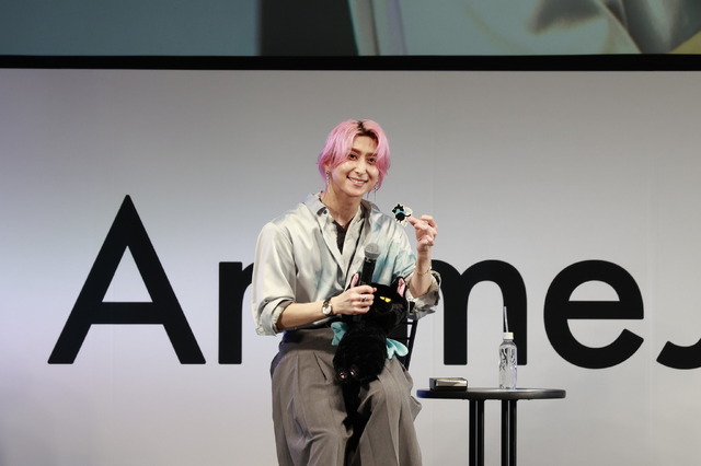 続いて梶は、抱えて登場したクロスケ(猫)のぬいぐるみにも触れながら、初めて作品のことを話せるのでとても楽しみと挨拶。悠木は、『風を継ぐもの』が楽しみになるようなステージになるように!と意気込みを語った。内山は挨拶もさながら、登場時に立ち位置を間違えたことを周りから突っ込まれ、冒頭からキャスト陣の仲の良さが伺えた。