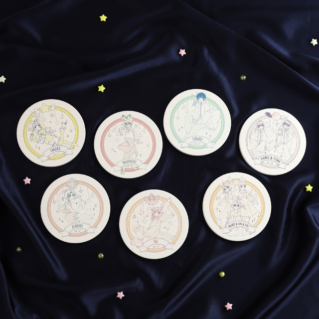 「満月コースター」は(全7種)は1,100円(税込)。カードキャプターさくら、X -エックス-、xxxHOLiC、ツバサ-RESERVoir CHRoNiCLE-、聖伝-RG VEDA-、東京BABYLON、魔法騎士レイアースがラインナップ。