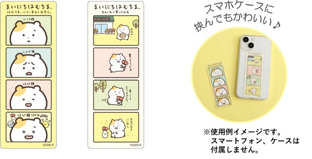 「はむちま日常4カットステッカー」ははむちまの日常が4コマで描かれたアイテム。スマホなどに挟んで持ち歩くのもおすすめだ。