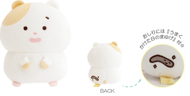 てのりぬいぐるみやぶらさげぬいぐるみ、ぬいぐるみバッジなどバラエティ豊かなぬいぐるみグッズも販売。もちもち素材のぬいぐるみのおしり部分には、「うまくかけた日のまゆげ」がデザインされている。