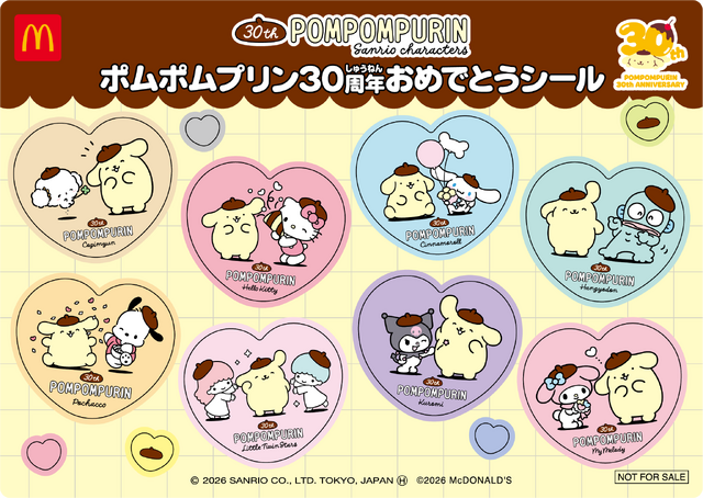 4月25日(土)・26日(日)の2日間は、ハッピーセット「サンリオキャラクターズ」を1セット購入につき「ポムポムプリン30周年おめでとうシール」、ハッピーセット「トミカ」を1セット購入につき「トミカ プレイングシート&トヨタガズーレーシングGR GT3ポスター」がプレゼントされる。