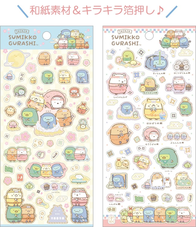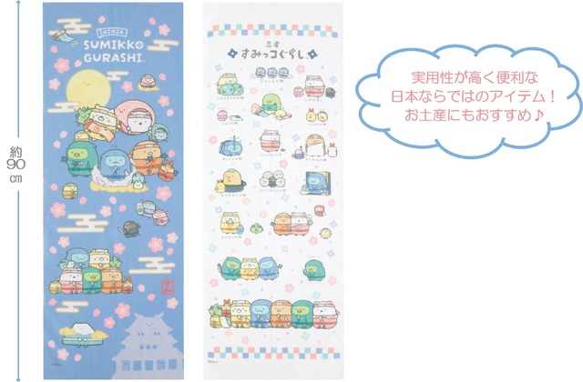 忍者に扮したすみっコたちのかわいいぬいぐるみをはじめ、遊び心満載な手裏剣モチーフの文房具や、和柄模様の縫製品、日用雑貨が多数登場。ユニークで楽しい新シリーズは、海外への日本土産やプレゼントにも喜ばれそうだ。