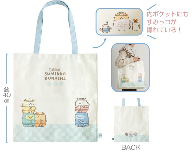 かくれみの術トートバッグ(3,300円※税込)は、内ポケットにもすみっコたちが隠れているかわいいデザイン。