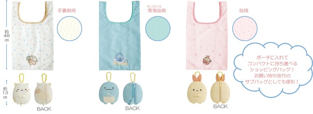 ポーチ付ショッピングバッグ(各3,300円※税込)は、ポーチに入れてコンパクトに持ち運べるショッピングバッグ。お買い物や旅行のサブバッグとして便利。