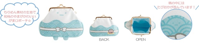 がま口ポーチ(2,530円※税込)は、ちりめん素材の生地で和柄のやまがかわいいポーチ。柄の中には「たぴおか」が潜んでいるというサプライズも!
