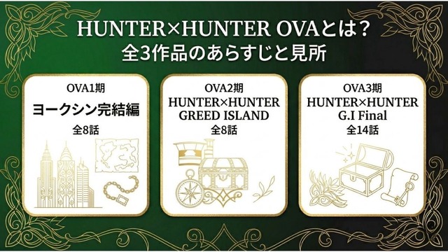 『HUNTER×HUNTER』OVAは全3シリーズ、合計30話で構成されています。