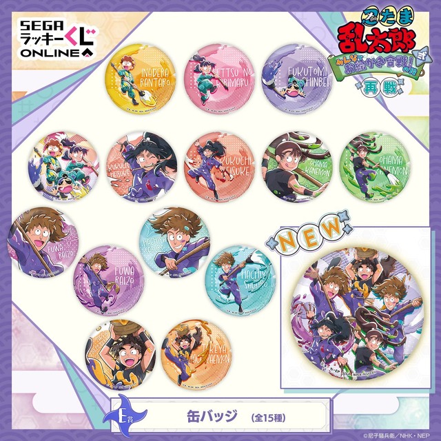 2024年4月に発売されたセガ ラッキーくじオンライン「忍たま乱太郎 みんなでお絵かき合戦!の段 弐」の一部賞品のラインナップをリニューアル。「忍たま乱太郎 みんなでお絵かき合戦!の段 弐 再戦」として、このたび登場した。