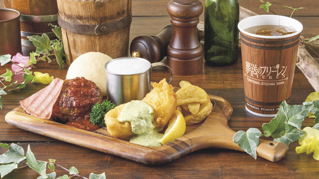 「アイゼン&ハイターのハンバーグとフィッシュ&チップスプレート」は頑張った者に贈られるハンバーグと、おつまみにもなるフィッシュ&チップス。アイゼンとハイターの2人が思い浮かぶ贅沢なプレートとなっている。