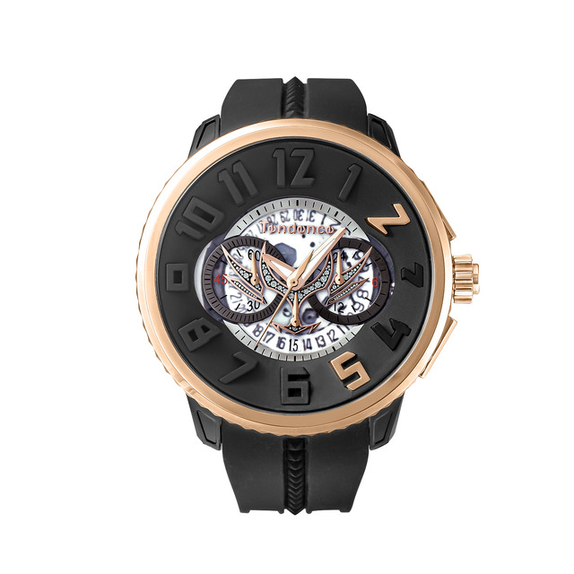 本商品は『仮面ライダーアギト』をデザインモチーフにした、放送開始25周年を記念する特別モデル。アギトの力強さや存在感をダイナミックに表現するため、50mmの大口径ケースと立体的な3Dインデックスが魅力の「GULLIVER Round」クロノグラフモデルをベースに採用している。